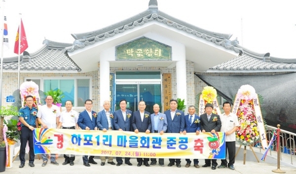 김종규 하포1리 이장은 “그동안 마을회관 신축을 위해 힘써준 관계자 여러분께 감사하다”며 “마을회관이 하포1리 마을의 소통 장소로 거듭날 수 있도록 잘 활용하겠다”고 말했다.