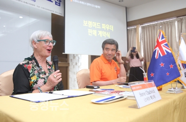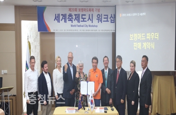 충남 보령시는 지난 22일 머드비치호텔에서 김동일 시장과 뉴질랜드 로토루아 스티브 채드윅 시장 등 관계자 30여 명이 참석한 가운데 뉴질랜드 로토루아 머드파우드 수출 계약을 체결했다.