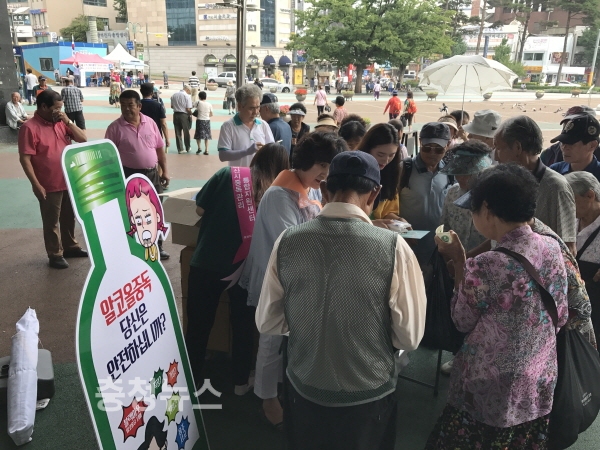 이번 캠페인은 해마다 휴가철이 되면 알코올소비와 음주관련 사건사고가 증가하고 있어 이를 예방하고자 ‘술 없이 시원한 여름’이라는 슬로건을 내걸고 지난 ▲7월 17일 구경찰서 사거리 ▲7월 18일 시외버스터미널, 신정호, 강당골 ▲7월 19일 온양온천역, 영인산 등에서 실시했다.
