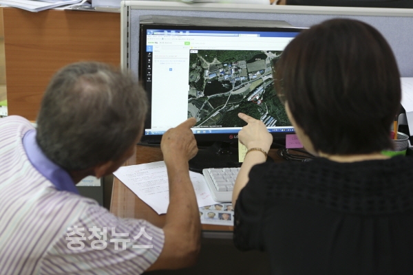 천안시가 폭우 피해 상황 조사를 하고 있는 모습