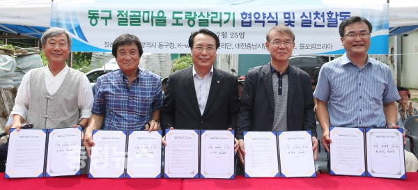 대전 동구(구청장 한현택)는 25일 신하동마을회관에서 물포럼코리아, K-Water 대청댐관리단, 대전충남시민환경연구소 등과 함께 절골마을 도랑살리기사업을 위한 협약식을 개최했다.