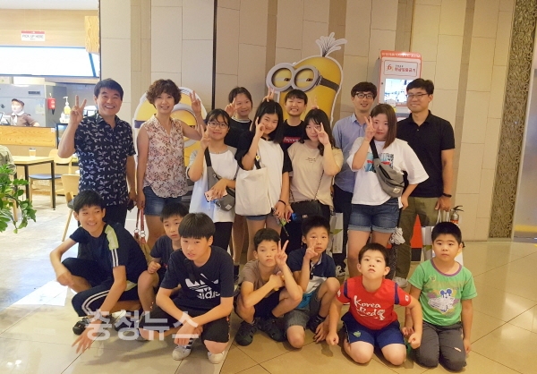 24일 도시철도공사에서 개최한‘사랑 나눔 영화시사회’에 초청된 선생님과 아이들이 기념촬영을 하고 있다.(맨 뒤줄 왼쪽 대전시그룹홈연합회 방영탁 회장)