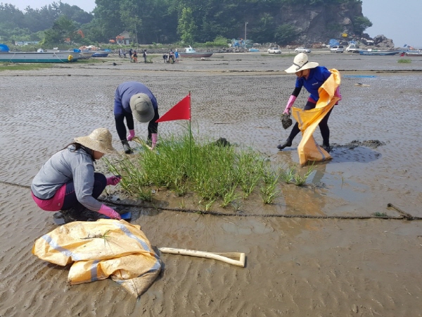 정낙춘 도 해양정책과장은 “갯끈풀은 번식력이 왕성해 염생식물과 패류 서식처 훼손 등 갯벌 생물 다양성 감소 문제를 일으키는 외래식물”이라며 “일차적인 제거 이후에도 시간이 지나면 어린 싹이나 종자를 통해 다시 번식하기 때문에 완전한 제거도 쉽지 않다”고 설명했다.