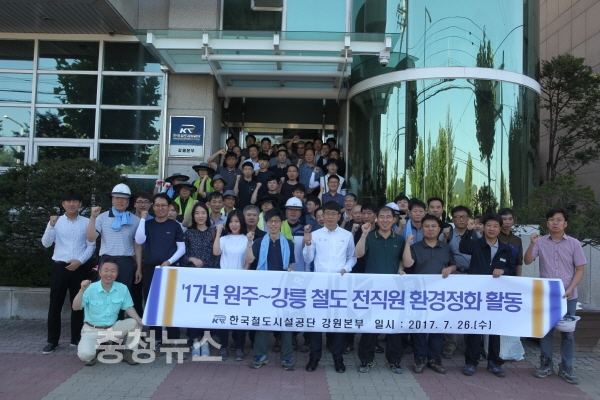 강원 본부 , 원주~강릉 철도 120.7km 선로변 대청소 시행 후 단체사진