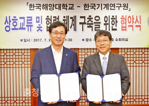 한국기계연구원은 26일 부산 한국해양대학교에서 기계연 박천홍 원장과 한국해양대학교 박한일 총장 등 두 기관 관계자가 참석한 가운데 MOU를 체결했다.