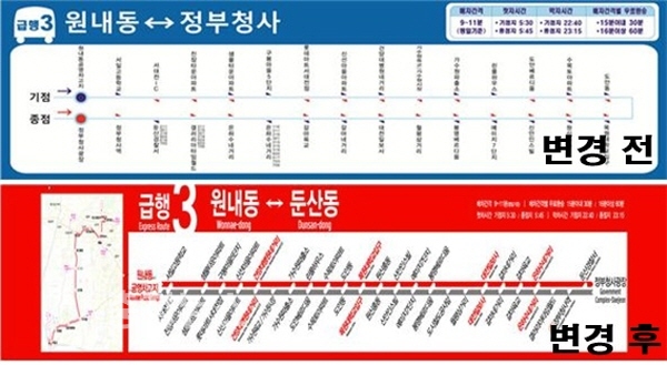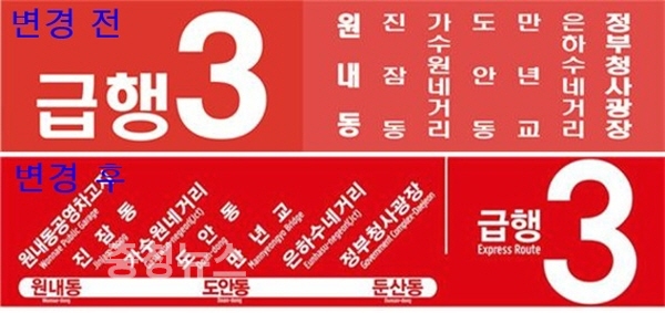 주요 변경사항으로 외부행선지판은 지역에 거주하거나 국제행사 시 방문하는 외국인을 위해 영문표기를 병행하고, 노선별 주요 경유 행정동을 표기해 노선 정보를 쉽게 알 수 있도록 했다.
