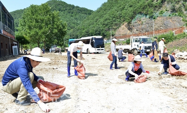 미원면 옥화리 피해지역 방문 복구 작업에 힘 보태
