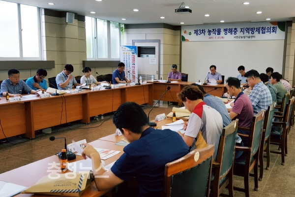 충남 서천군농업기술센터(소장 석희성)는 지난 27일 농업기술센터 회의실에서 ‘제3차 농작물 병해충 지역방제협의회’를 개최하고 벼 병해충 방제적기를 오는 8월 10일 전ㆍ후로 설정하였다.