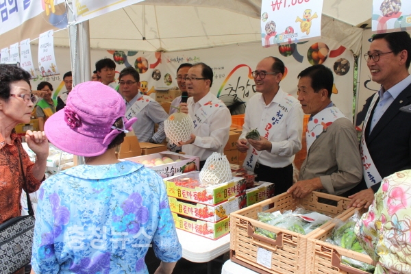 특히, 이날 행사에는 이석화 청양군수와 유찬형 충남농협본부장, 청양관내 조합장이 직접 홍보·판촉행사에 참여하여 제18회 청양 고추·구기자축제(9.8~10.) 홍보와 청양아사기고추 300포/7~8개포장을 나누어 주고 농협직원은 농산물상품권을 이용해 농산물을 구입하는 등 가뭄과 수해로 어려움을 겪고 있는 농업인의 어려움을 극복하는데 동참했다.