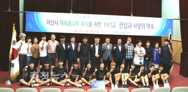 아산시 온양용화중 수영부와 아산고 하키부에 지원 약속