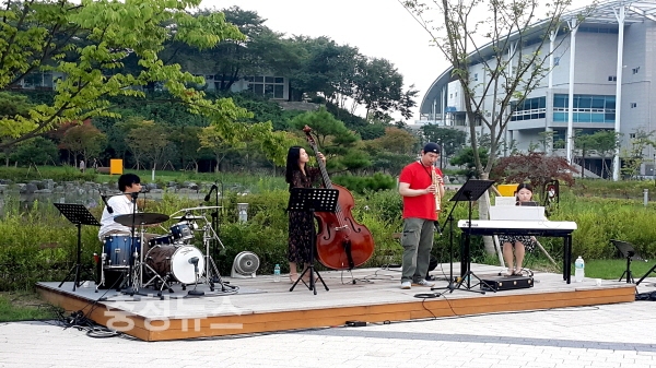 특히, 지난 주말 열린 숲속버스킹은 재즈음악과 가요팝을 재해석한 재즈퀘텟 공연과 시에 노래를 붙여 부르는 가수겸 작곡가 신재창씨의 공연이 열려 시민들의 마음을 촉촉하게 적셨다.