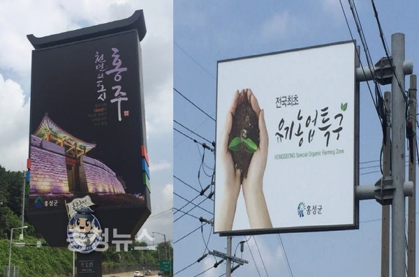 특히, 이번 정비된 안내판은 차량운전자의 이동속도를 고려하여 짧은 시간에 홍성을 홍보할 수 있는 이미지로 표현된 점이 눈에 띈다.