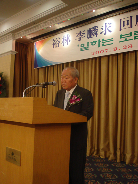 이날 대전고 동기동창인 박준병 전국회의원은 축사에서 "이 명예회장은 바쁜 기업활동, 사회활동, 정치활동 중에 공익법인 계룡장학재단을 설립하여 기업 이익의 사회 환원에 솔선수범 하고 있다"고 소개했다.