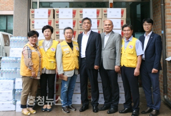 천안시의회(의장 전종한) 의원과 사무국 직원들은 31일 대한적십자사 천안희망나눔봉사센터를 방문해 최근 집중호우로 어려움을 겪고 있는 수해지역에 라면 및 생수 등 위문품을 전달했다.