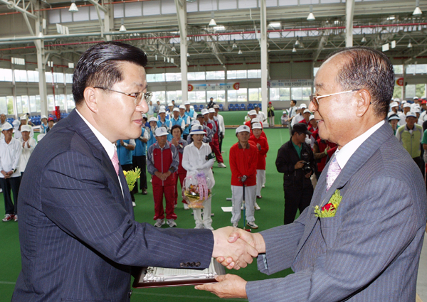 진동규 유성구청장은 28일 전천후경기장에서 열린 대전시연합회장기 생활체육게이트볼대회에서 생활체육 진흥에 기여한 공로로 김건배 대전광역시 게이트볼 연합회장으로부터 국민생활전국게이트볼연합회장의 공적패를 전수받았다.