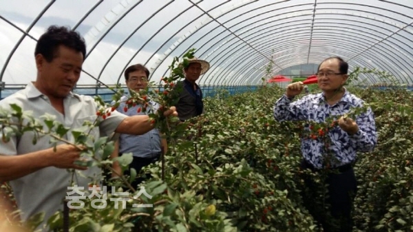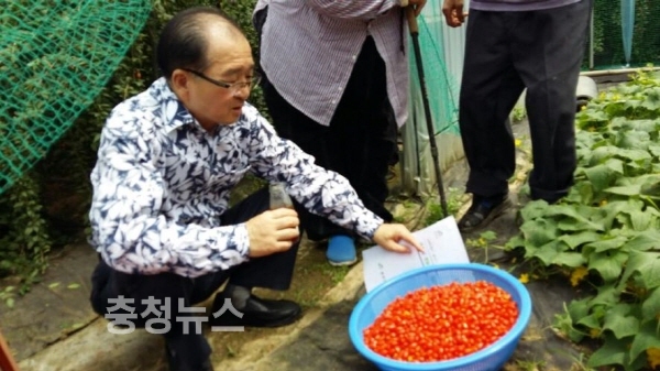 부자농촌 만들기에 매진하고 있는 이석화 청양군수가 지난 29일 화성면 구기자 시설재배장과 인근 고추 재해 포장을 방문했다.