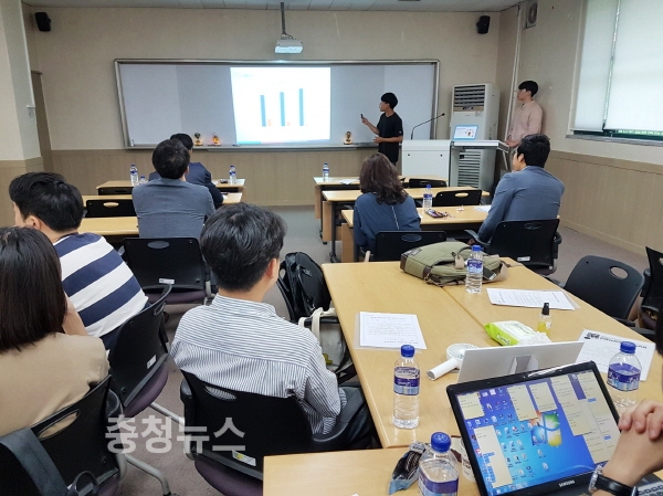 한남대 창업동아리 ‘Twinkle’팀의 시제품제작 발표 및 그룹멘토링 모습 /사진제공 한남대