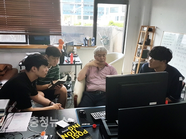 한남대 창업동아리 ‘클로버팀’이 최종근 지도교수의 멘토링 지도를 받고 있다. /사진제공 한남대