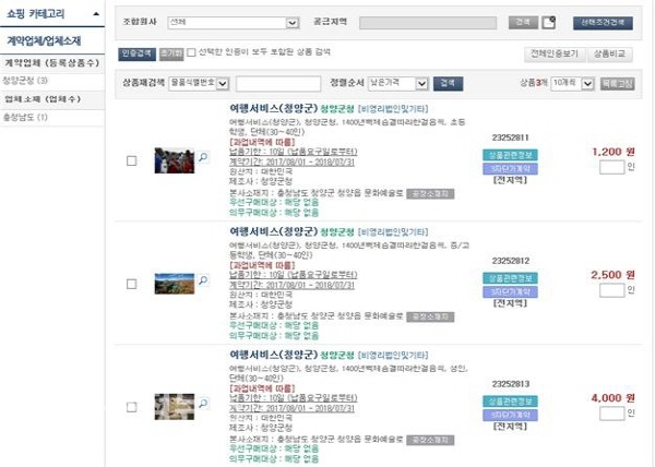 조달청 나라장터에 힐링 여행상품 등록