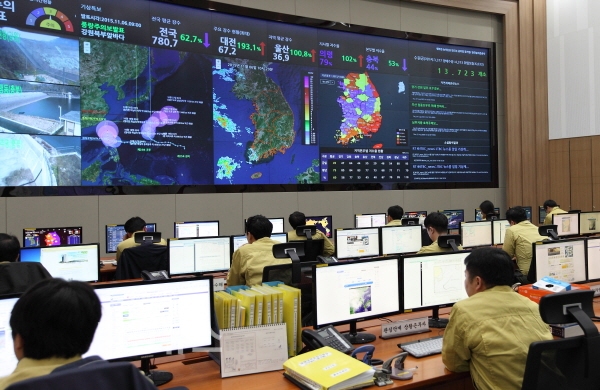 나주 본사 재난안전종합상황실에서 기상 및 재난상황을 모니터링 중이다