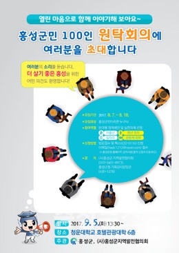홍성군과 (사)홍성군지역발전협의회에서 공동 주관하는 원탁회의는 다음달 5일 오후 1시 30분부터 청운대학교 호텔관광대학 6층에서 개최된다.