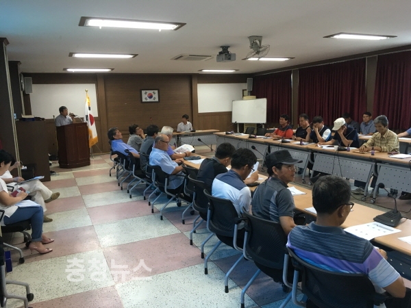 영인면 체육대회 추진위원회가 모여 회의 모습