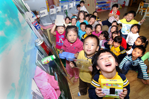 이날 교육은 자라나는 어린이들에게 환경보호의 중요성을 일깨워 주는 교육으로 자연환경사진 판넬위에 자석으로 붙여놓은 70여점의 실물 재활용품을 어린이가 하나씩 떼어 직접 재활용품 분리수거함에 종류별로 분류하여 넣는 놀이를 겸한 체험학습과 재활용 가능․불가능품목의 실물을 함께 전시 병행하여 실시하는 어린이 눈높이에 맞는 재활용 맞춤형 교육방법이다