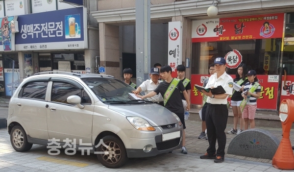 대전 대덕구(구청장 박수범)는 7일부터 오는 11일까지 일주일간 여름방학을 맞이해 자원봉사 신청한 청소년 50여명을 대상으로 불법 주·정차 현장을 체험해 올바른 주차질서 문화를 선도하고 준법정신 함양을 위한 주차질서 현장체험단을 운영한다.
