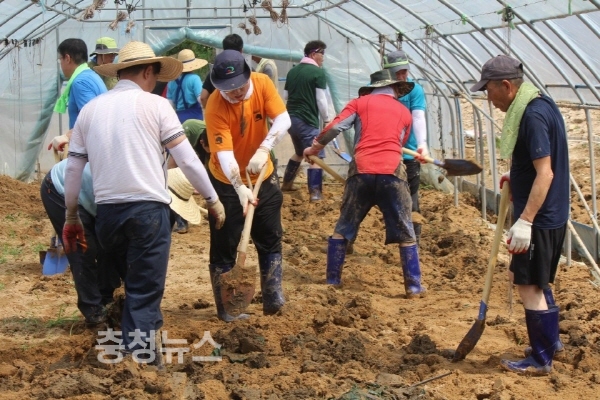 민주당 충남도당, 폭염 속 수해복구 '구슬땀'
