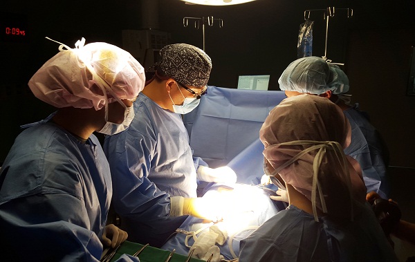 이상억 교수(검정캡)가 상부위장관수술을 전수하고 있다.