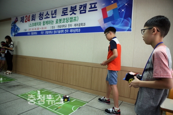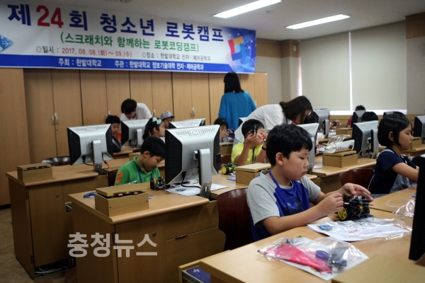한밭대 전자·제어공학과 주관으로 열린 이 캠프는 방학기간 동안 초등학생들에게 로봇을 조립하고 구동하는 체험기회를 제공해 논리성, 창의성, 사고력을 기르고 로봇에 대한 기초지식을 배우는 기회가 되고 있다.