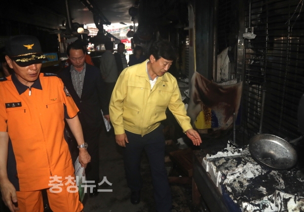 김경훈 대전시의회 의장은 9일 새벽 발생한 대전중앙시장 화재현장을 찾아 피해 상인들을 위로하고 관계기관에 조속한 피해 지원대책 마련을 주문하고 추가적인 화재가 발생하지 않도록 예방대책 강구를 당부했다.