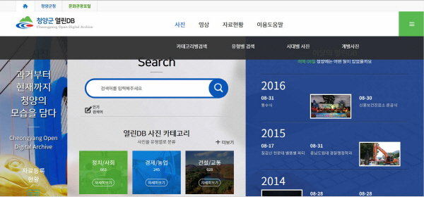 청양군 열린 사진 DB는 디지털 시스템 도입 후 빠르게 축적되고 있는 사진 및 영상자료를 체계적으로 정리 보관하는 동시에 내부 공무원은 물론 주민들이 자유롭게 활용할 수 있는 온라인 시스템이다.