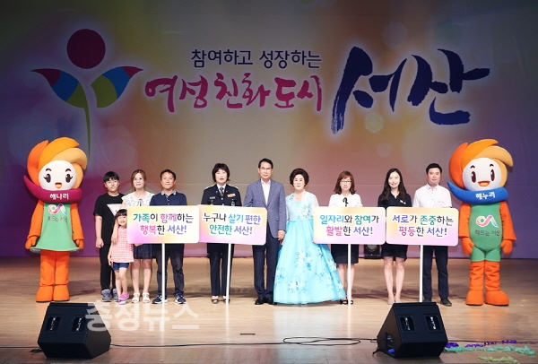 충남 서산시는 11일 서산시 문화회관 대공연장에서 600여명의 시민이 참석한 가운데 ‘참여하고 성장하는 여성친화도시 서산’을 주제로 제21회 서산시 여성대회 및 여성친화도시 선포식을 개최했다.