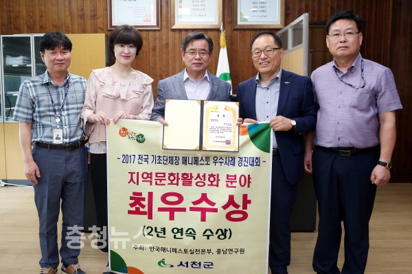 충남 서천군(군수 노박래)은 지난 10일 한국매니페스토실천본부에서 주관한 2017 전국기초단체장 매니페스토 우수사례 경진대회 지역문화활성화 분야에서 최우수상을 수상했다.
