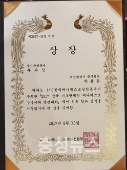 대전 중구(구청장 박용갑)는 지난 10일 한국매니페스토실천본부에서 주최하는 ‘2017 전국기초단체장 매니페스토 우수사례 경진대회’에서 도시재생 분야 전국 우수상을 수상했다.