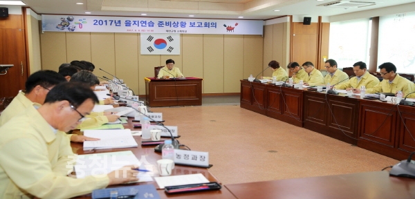 이를 위해, 군은 지난 8일 군청 소회의실에서 한상기 군수 주재로 ‘2017년도 을지연습 준비상황 보고회’를 열어 각 부서별 사전준비사항을 점검했으며, 이달 16일에는 군 재난종합상황실에서 근무 참여자를 대상으로 국지도발 대응 연습을 실시하고 17일에는 통합방위협의회 위원 50명과 함께 통합방위협의회를 개최한다는 방침이다.