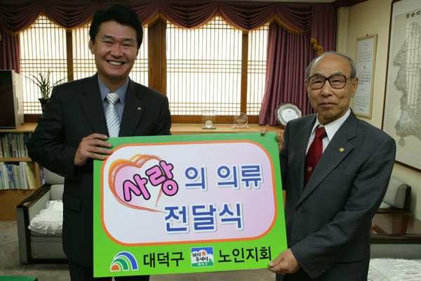 ▲ 사랑의의류전달식 삼진안전(대화동 소재, 대표 송범환))에서 관내 어르신들을 위해 기탁한 겨울용 작업 점퍼 95벌, 춘추용 작업 점퍼 158벌(4백만원 상당)을 10월 15일 오후 1시 30분 구청 구민의 사랑방에서 노인지회에 전달식을 가졌다. ▲ 직장교육 저작권자 © 충청뉴스 무단전재 및 재배포 금지 임해혁 기자 다른기사 보기 기사가 마음에 드셨나요? 충청뉴스 좋은 기사 후원하기 1,000원 3,000원 5,000원 10,000원 30,000원 50,000원 직접입력 비회원 약관동의하기 ※ 소중한 후원금은 더 좋은 기사를 만드는데 쓰겠습니다.