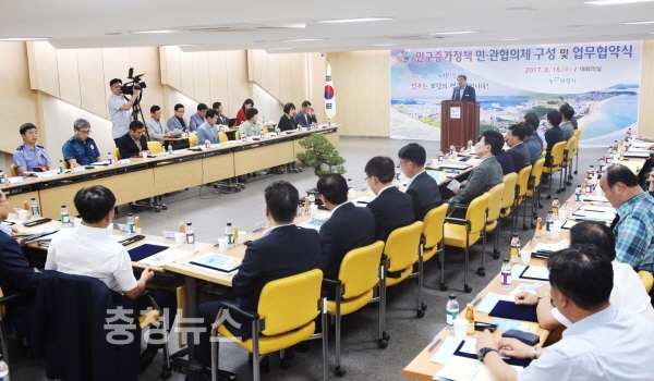 시는 16일 시청 대회의실에서 소방서, 교육지원청 등 22개 기관장과 새마을운동보령시지회 등 51개 단체장 등 모두 70여명이 참석한 가운데 보령시 인구증가 정책 추진을 위한 민관협의체 구성 및 협약식을 가졌다.