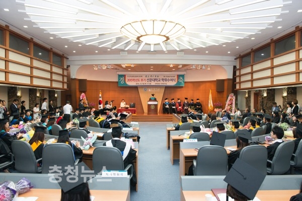 선문대학교(총장 황선조)가 오는 17일 오전 11시 본관 6층 국제회의실에서 2016학년도 후기 학위수여식을 개최한다고 밝혔다. 지난해 후기학위수여식 사진 이날 학위수여식에서 박사 7명, 석사 69명, 학사 433명 등 총 509명이 학위를 받는다. 아울러 이사장상은 이소민(일어일본학과), 총장상은 김동근(정보통신공학과) 외 4명, 공로상은 원정희(경영학부) 외 2명, 단과대학장상은 박건영(정보통신공학과) 외 4명이 수상한다. 학위수여식은 조인국 대학원교학팀장의 사회로 진행되며, 김종해 교무처장의 학사보고, 황선조 총장의 학위증서와 상장 수여, 이재영 교목실장의 축도가 이어진다. 저작권자 © 충청뉴스 무단전재 및 재배포 금지 최형순 기자 다른기사 보기 기사가 마음에 드셨나요? 충청뉴스 좋은 기사 후원하기 1,000원 3,000원 5,000원 10,000원 30,000원 50,000원 직접입력 비회원 약관동의하기 ※ 소중한 후원금은 더 좋은 기사를 만드는데 쓰겠습니다.