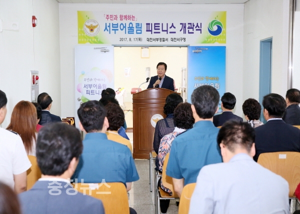 대전 서구(구청장 장종태)는 주민개방형 체육시설 설치 지원사업의 일환으로 서부경찰서에 3천만 원을 지원해 ‘서부 어울림 피트니스’를 조성하고, 17일 개관식을 했다고 밝혔다.