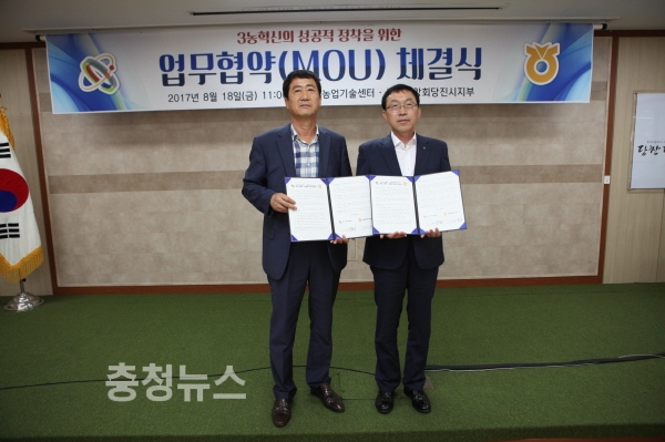 충남 당진시농업기술센터(소장 김충남)와 농협중앙회당진시지부(지부장 이석우)가 당진형 3농혁신과 농업 6차산업화에 앞장서기 위해 손을 잡았다.