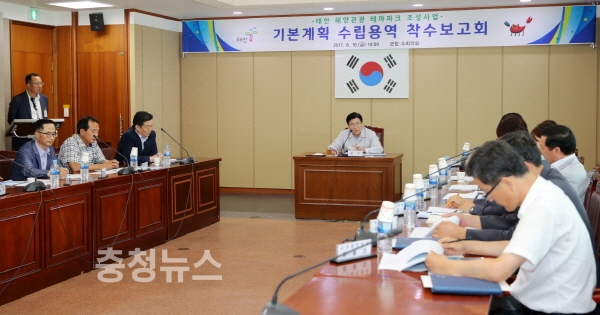 이번 착수보고회는 28개의 해수욕장과 42개의 항·포구, 559.3km의 리아스식 해안 등 태안의 독특한 자연경관에 미래관광 트렌드를 접목시켜 신개념 해양 테마파크를 조성하기 위한 것으로, 군은 지난해 4월 충청남도 주관 ‘해양수산발전 대표산업’ 대상지로 선정된 이후 한상기 군수 등 군 방문단이 일본의 테마파크를 방문해 벤치마킹을 실시하는 등 적극적인 움직임을 보이고 있다.