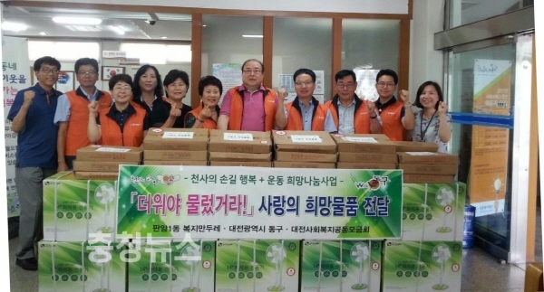 대전 동구 판암1동 복지만두레(회장 유성근)는 천사의 손길 행복⁺ 운동의 희망나눔사업 일환으로 18일 판암1동주민센터에서 저소득가정의 건강한 여름나기를 위한 냉방물품을 전달했다.