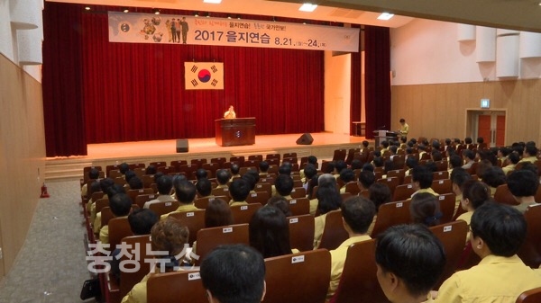 설동호 대전교육감은 21일 시교육청 대강당에서 전 직원이 참석한 가운데 열린 2017 을지연습 최초상황 보고회에 참석했다.