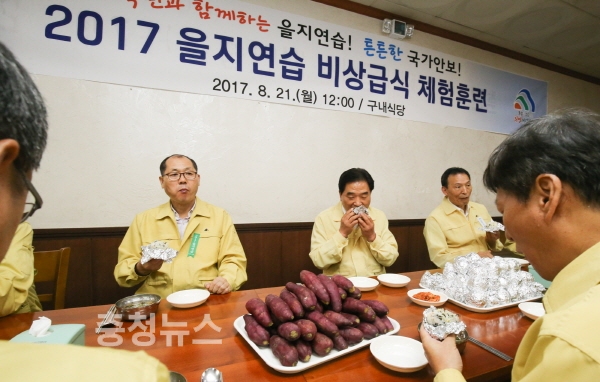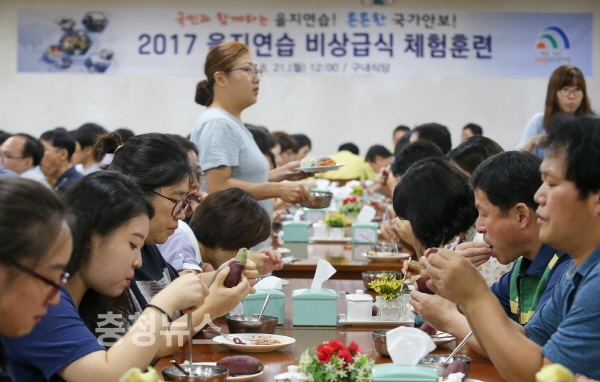 대덕구(구청장 박수범)는 21일 구청 구내식당에서 2017 을지연습 훈련의 일환으로 ‘비상식량 급식체험’을 실시했다.