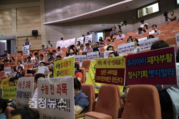 교육부의 2021학년도 수능 절대평가 확대와 관련, 21일 대전에서 마지막 공청회가 열렸으나 이번에도 학부모와 교사를 비롯해 대학관계자 등이 의견을 달리했다.