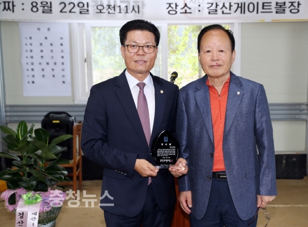 홍성군의회 김덕배 의장(좌), 이종복 갈산면분회 회장(우) / 충청뉴스최형순 기자