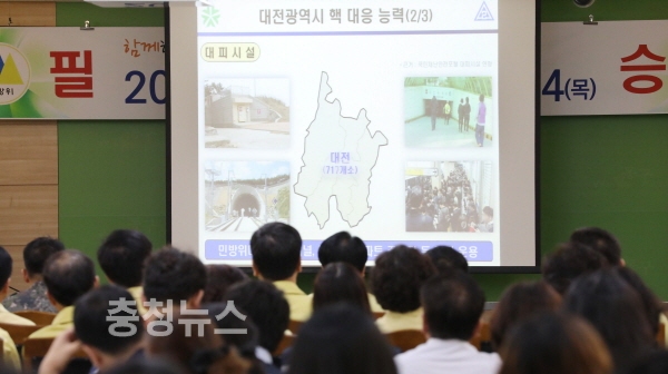 대전 동구(구청장 한현택)는 24일 구청 중회의실에서 한현택 동구청장을 비롯한 직원 250여 명이 참석한 가운데 2017년 을지연습 핵 대응 교육을 실시했다.
