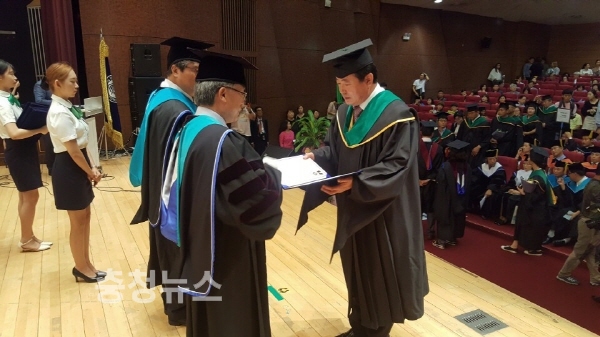 장 의원은 25일 공주대학교 후기 학위수여식에서 김희수 총장 직무대리로부터 농학석사 학위를 받았다.